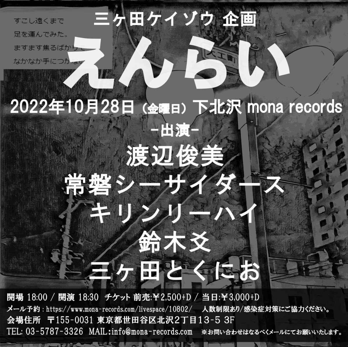 | 出演 | ・渡辺俊美(TOKYO No.1 SOULSET/THE ZOOT16) ・常磐シーサイダース ・キリンリーハイ ・鈴木爻 ・三ケ田とくにお シークレットゲスト!!! |