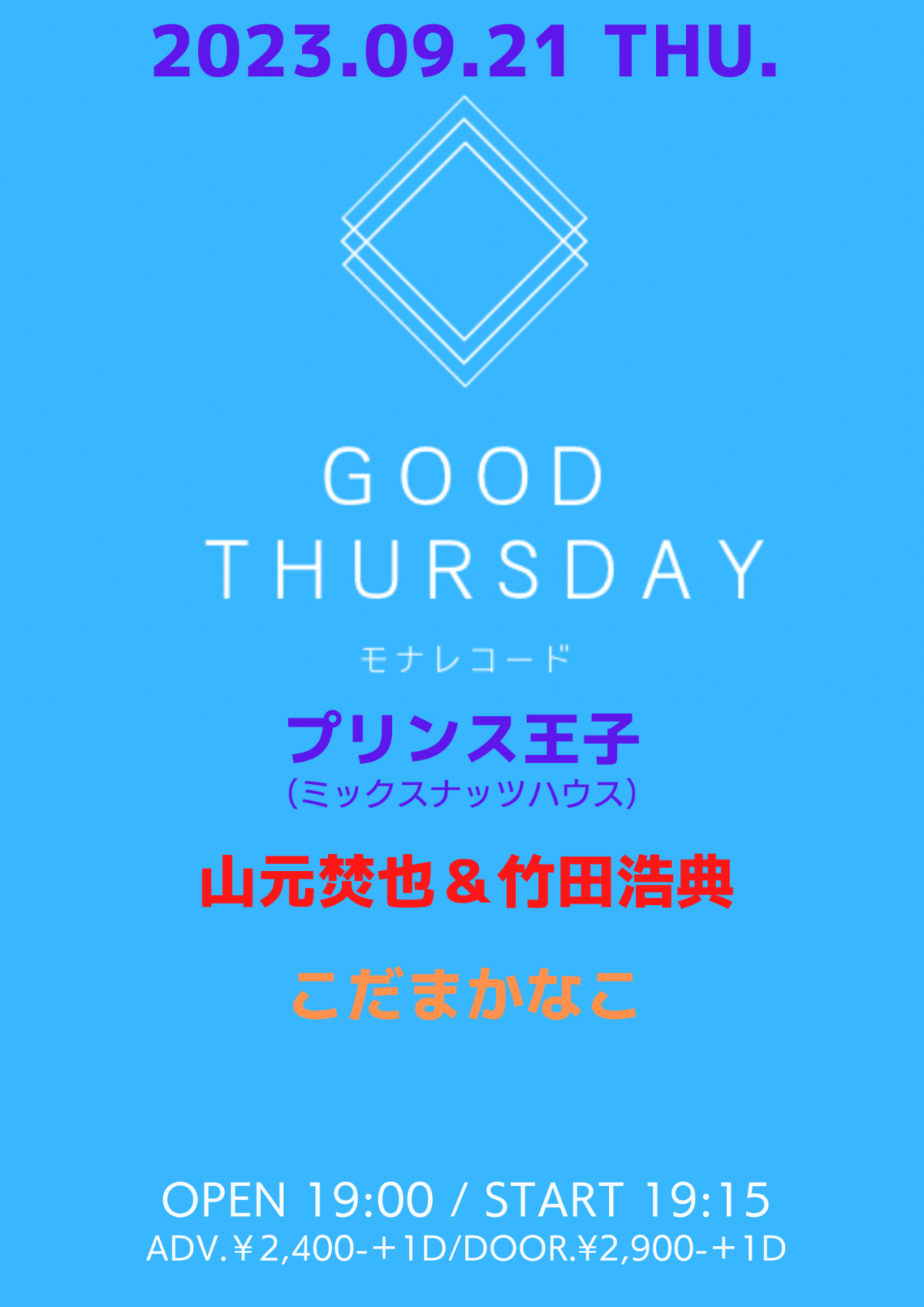 | 料金 | 前売:¥2,400+1Drink / 当日:¥2,900+1Drink |