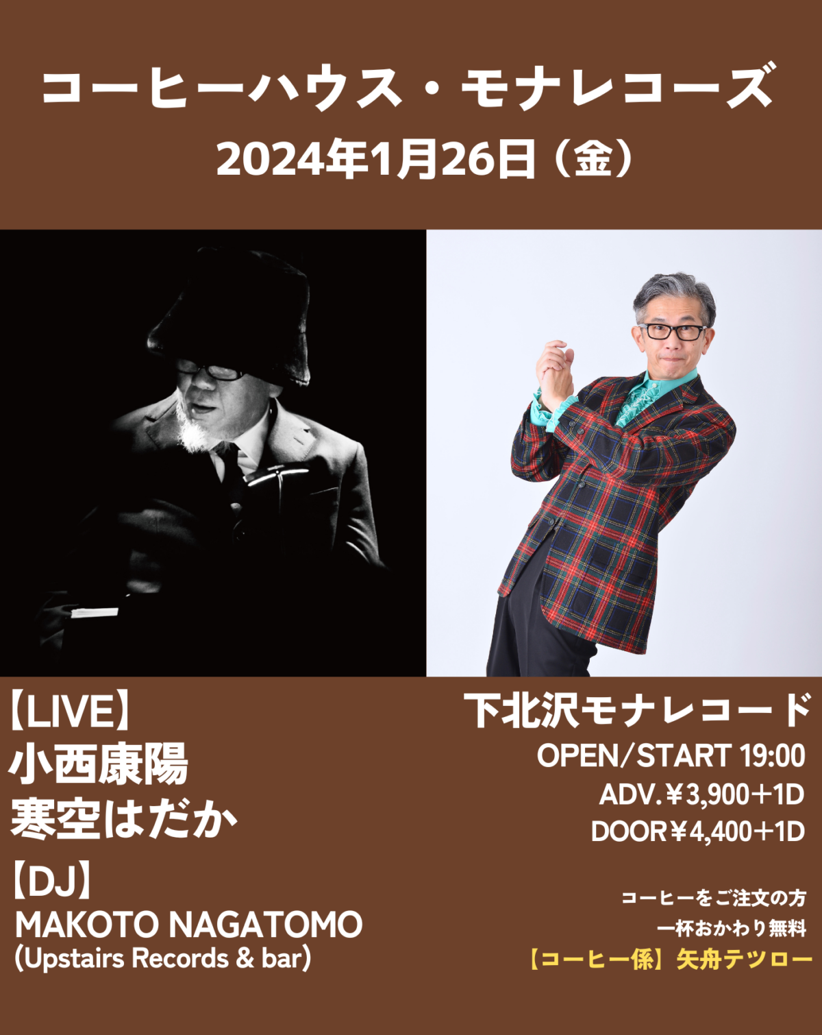| 出演 | 【LIVE】 小西康陽 寒空はだか 【DJ】 Makoto Nagatomo(Upstairs Records & Bar) |