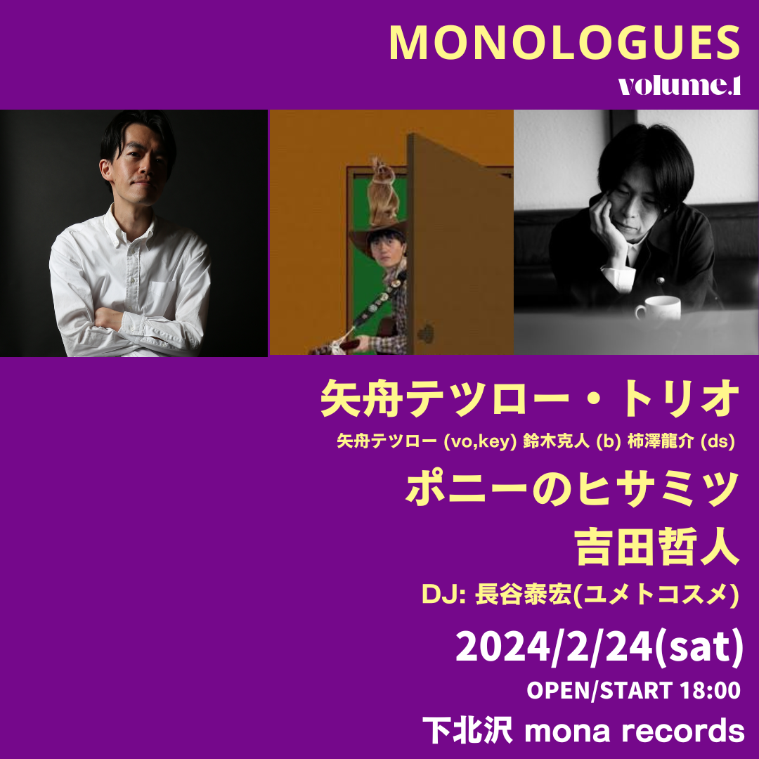 | 出演 | live: 矢舟テツロー・トリオ (矢舟テツロー・鈴木克人・柿澤龍介) ポニーのヒサミツ 吉田哲人 DJ: 長谷泰宏(ユメトコスメ) |