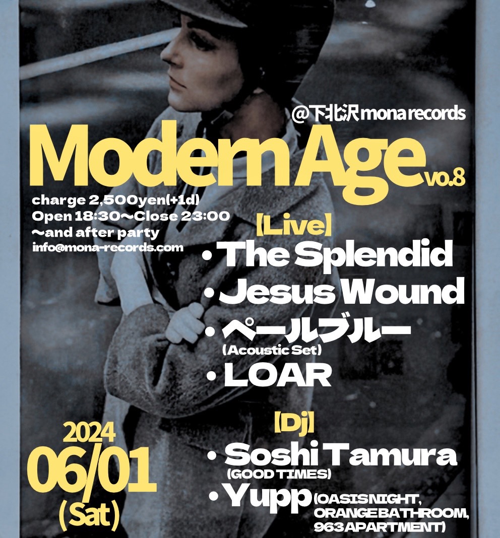 | 出演 | 【Live】 ・The Splendid ・Jesus Wound(福島) ・ペールブルー (Acoustic Set) ・LOAR 【DJ】 ・Soshi Tamura(GOOD TIMES) ・Yuppo(OASIS NIGHT, ORANGE BATHROOM,963 APARTMENT) |