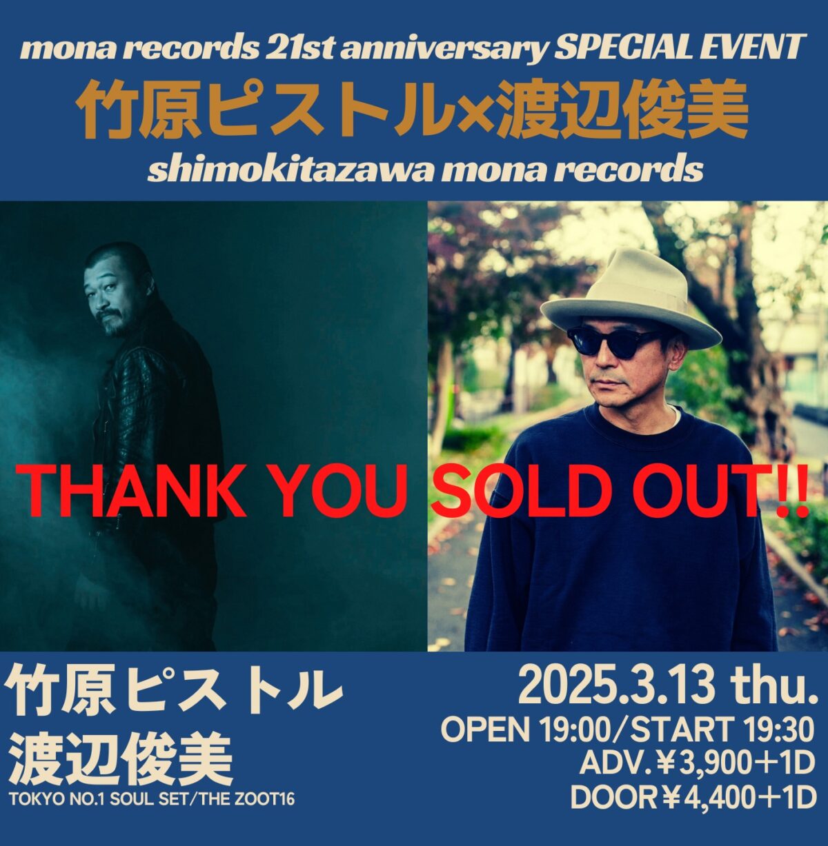 | 出演 | 【LIVE】 竹原ピストル 渡辺俊美(TOKYO No.1 SOUL SET/THE ZOOT16) |
