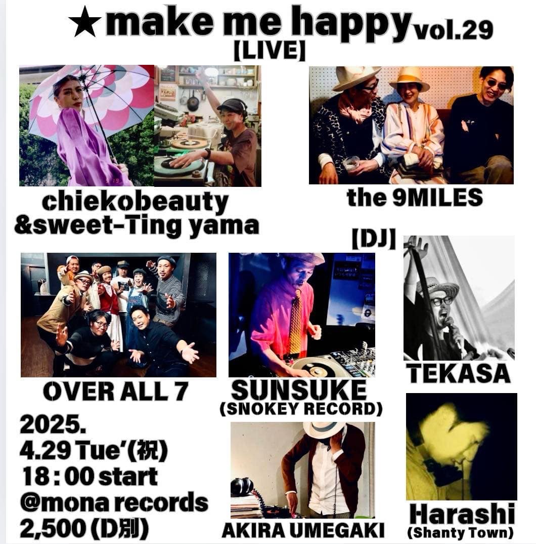| 出演 | 【LIVE】 ・the 9MILES ・chieko beauty&sweet-Ting yama ・OVER ALL 7 【DJ】 ・SUNSUKE (SNOKEY RECORD) ・TEKASA ・Harashi (Shanty Town) ・AKIRA UMEGAKI |