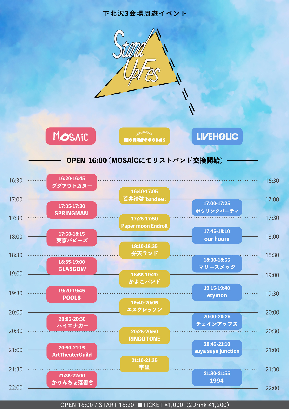 | 料金 | 前売:¥1,000(+2Drink ¥1,200) ※総合受付は下北沢MOSAiCにて16:00〜 |