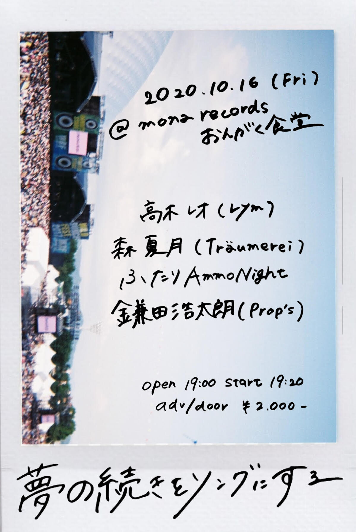| 出演 | 高木レオ(Lym) / ふたりAmmoNight / 森 夏月(Traumerei) / 鎌田浩太朗(Prop's) |