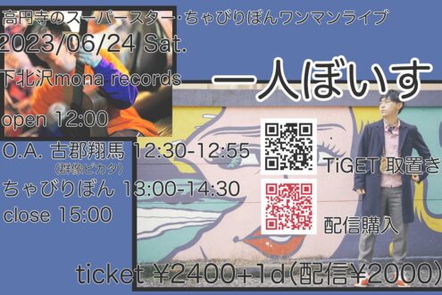 チケット料金1,500円+2ドリンク / 配信1,500円