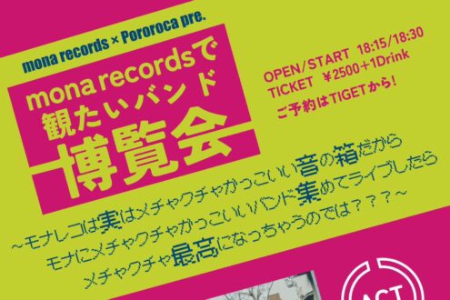 mona records × Pororoca pre.”mona recordsで観たいバンド博覧会〜モナレコは実はメチャクチャかっこいい音の箱だからモナにメチャクチャかっこいいバンド集めてライブしたらメチャクチャ最高になっちゃうのでは???〜”