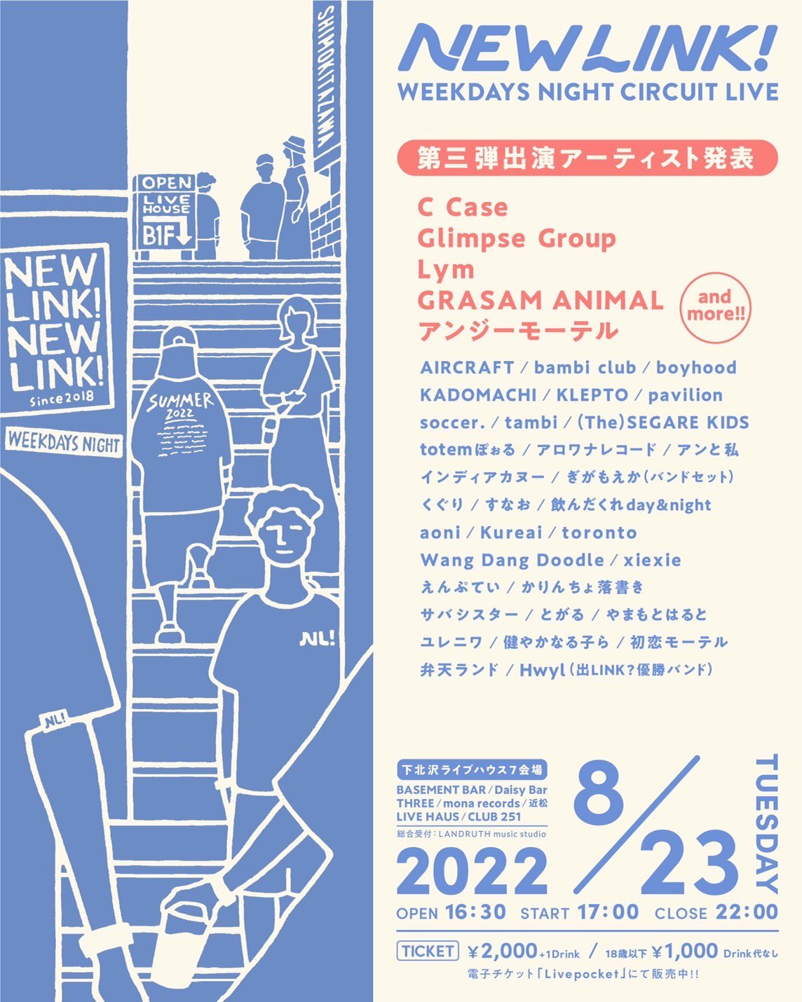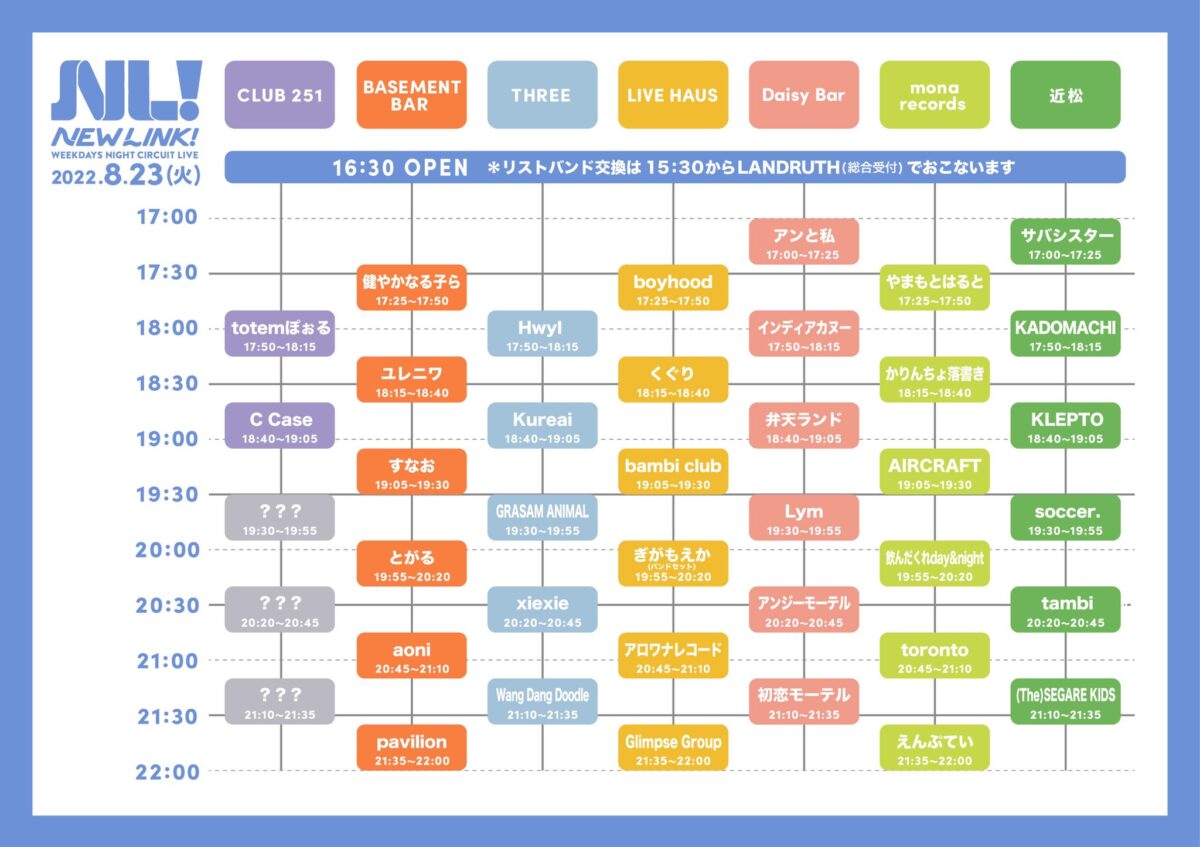 | 出演 | AIRCRAFT / bambi club / boyhood / KADOMACHI / KLEPTO / pavilion / soccer. / tambi / (The)SEGARE KIDS / totemぽぉる / アロワナレコード / アンと私 / インディアカヌー / ぎがもえか(バンドセット) / くぐり / すなお / 飲んだくれday&night / aoni / Kureai / toronto / Wang Dang Doodle / xiexie / えんぷてい / かりんちょ落書き / サバシスター / とがる / やまもとはると / ユレニワ / 健やかなる子ら / 初恋モーテル / 弁天ランド / Hwyl(出LINK?優勝バンド) / C Case / Lym / Glimpse Group / GRASAM ANIMAL / アンジーモーテル / |