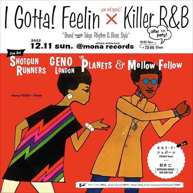 | 出演 | 【Live】 ⚫️SHOTGUN RUNNERS(from金沢) ⚫️GENO LONDON ⚫️THE PLANETS ⚫️Mellow Fellow 【Dj】 ⚫️ネモト・ド・ショボーレ(Childish Tones) ⚫️新井 仁 (NORTHERN BRIGHT /RON RON CLOU) |