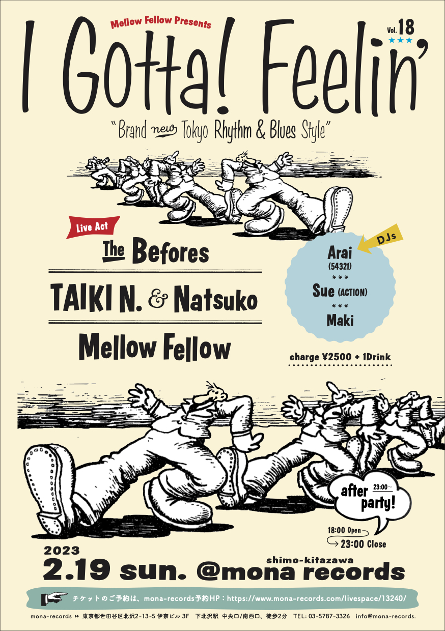 | 出演 | 【Live】 ・ The Befores ・ TAIKI N. & Natsuko ・ Mellow Fellow 【Dj】 ・・Arai(54321) ・ Sue ・ Maki |