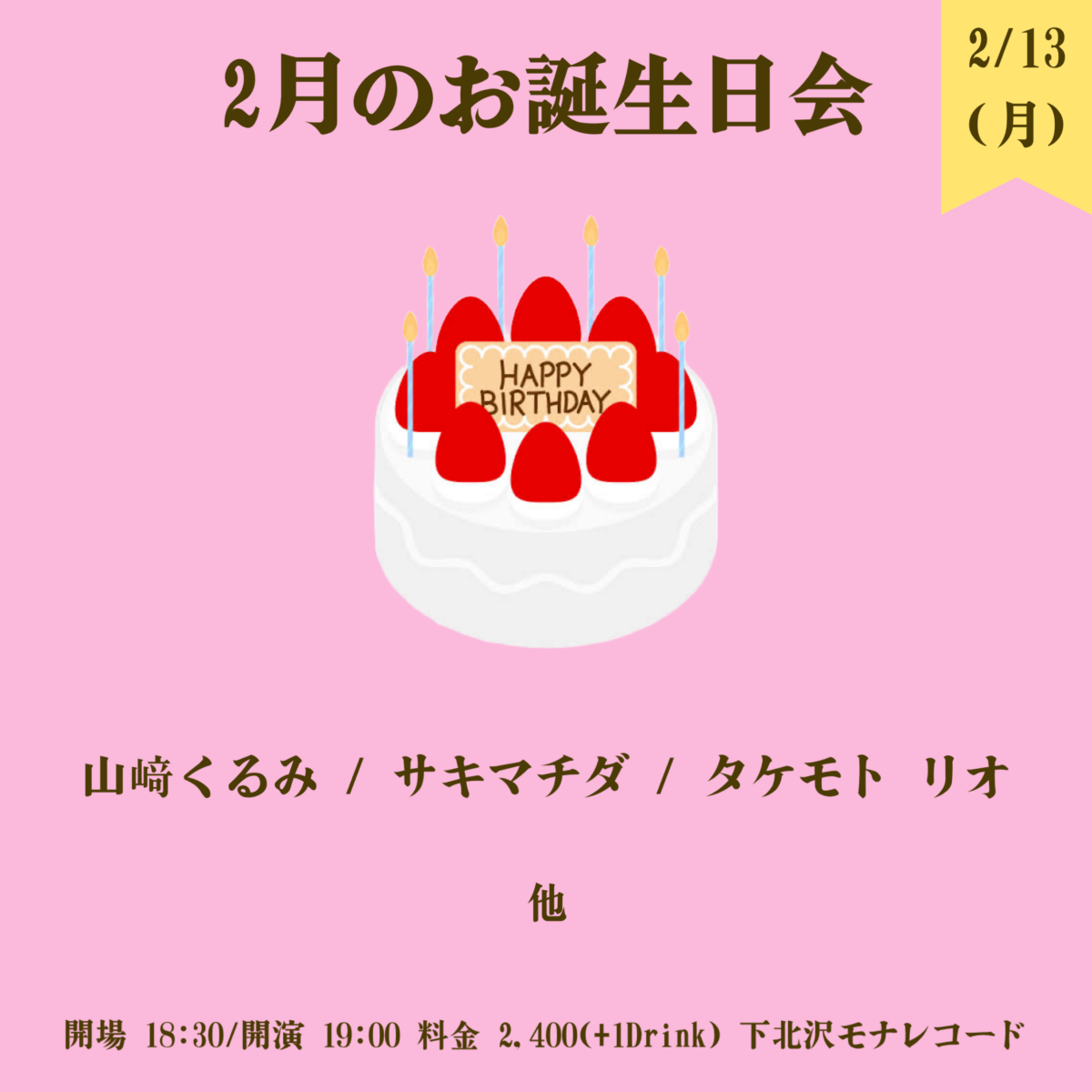 | 料金 | 前売:¥2,400+1Drink |