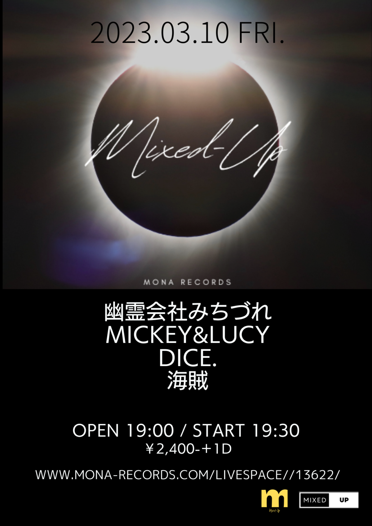 | 料金 | 前売:¥2,400+1Drink / 当日:¥2,900+1Drink |
