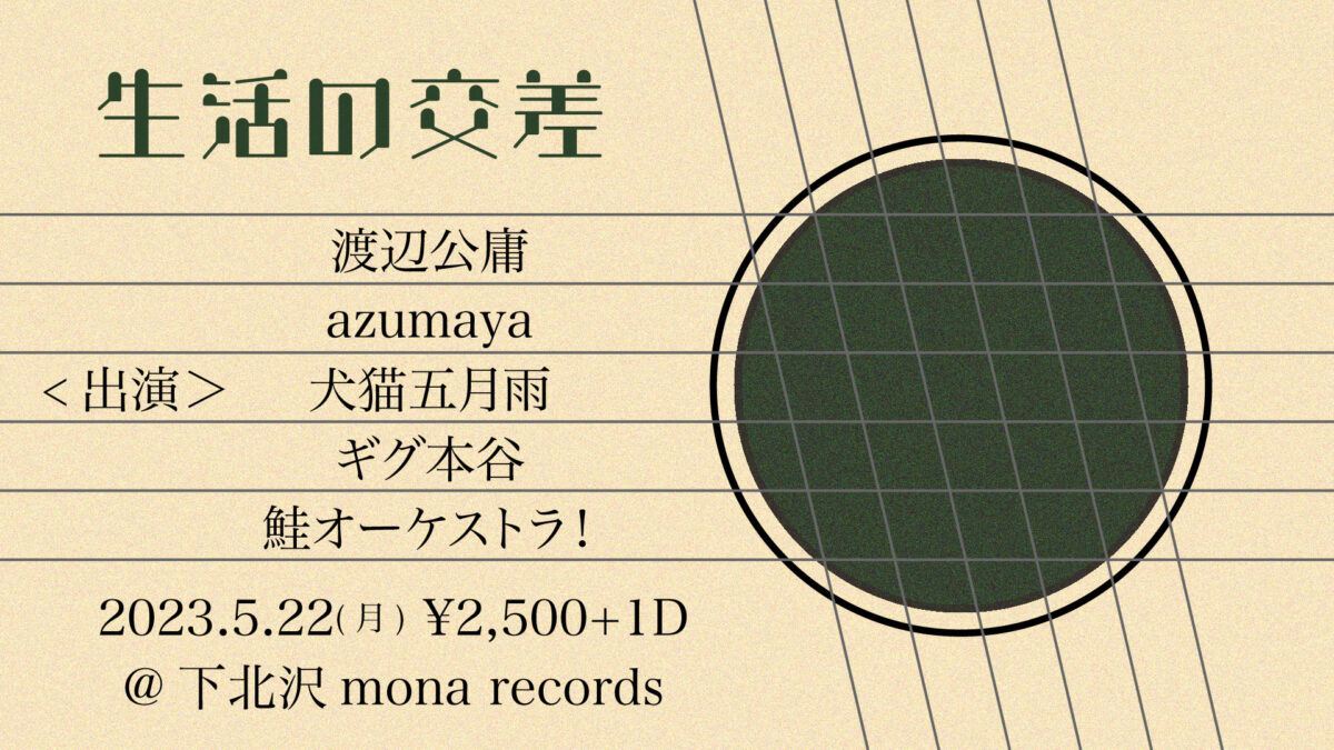 | 出演 | 犬猫五月雨 / 渡辺公庸 / azumaya / ギグ本谷 / 鮭オーケストラ! |