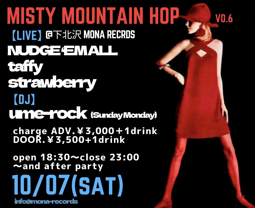 [Live] ・NUDGE ‘EM ALL ・taffy ・strawberry [Dj] ・ume-rock(Sunday Monday)