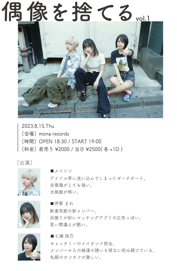 | 料金 | 前売:¥2,000+1D / 当日:¥2,500+1D |