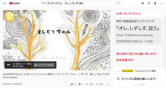 オレモリカエル 配信ワンマンライヴ 『オレ、しずしず、謡う』