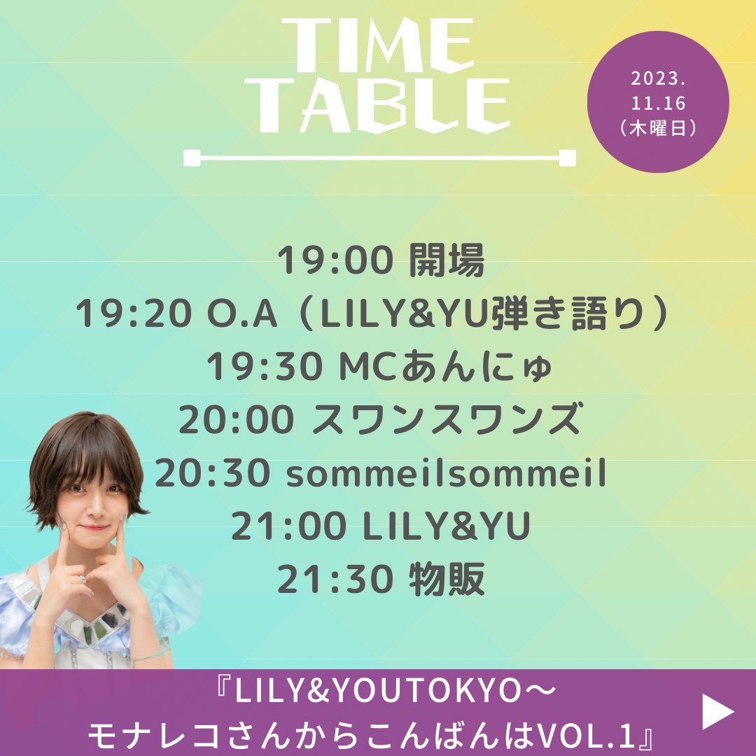 | 出演 | LILY&YU / MCあんにゅ / スワン スワンズ / sommeil sommeil |