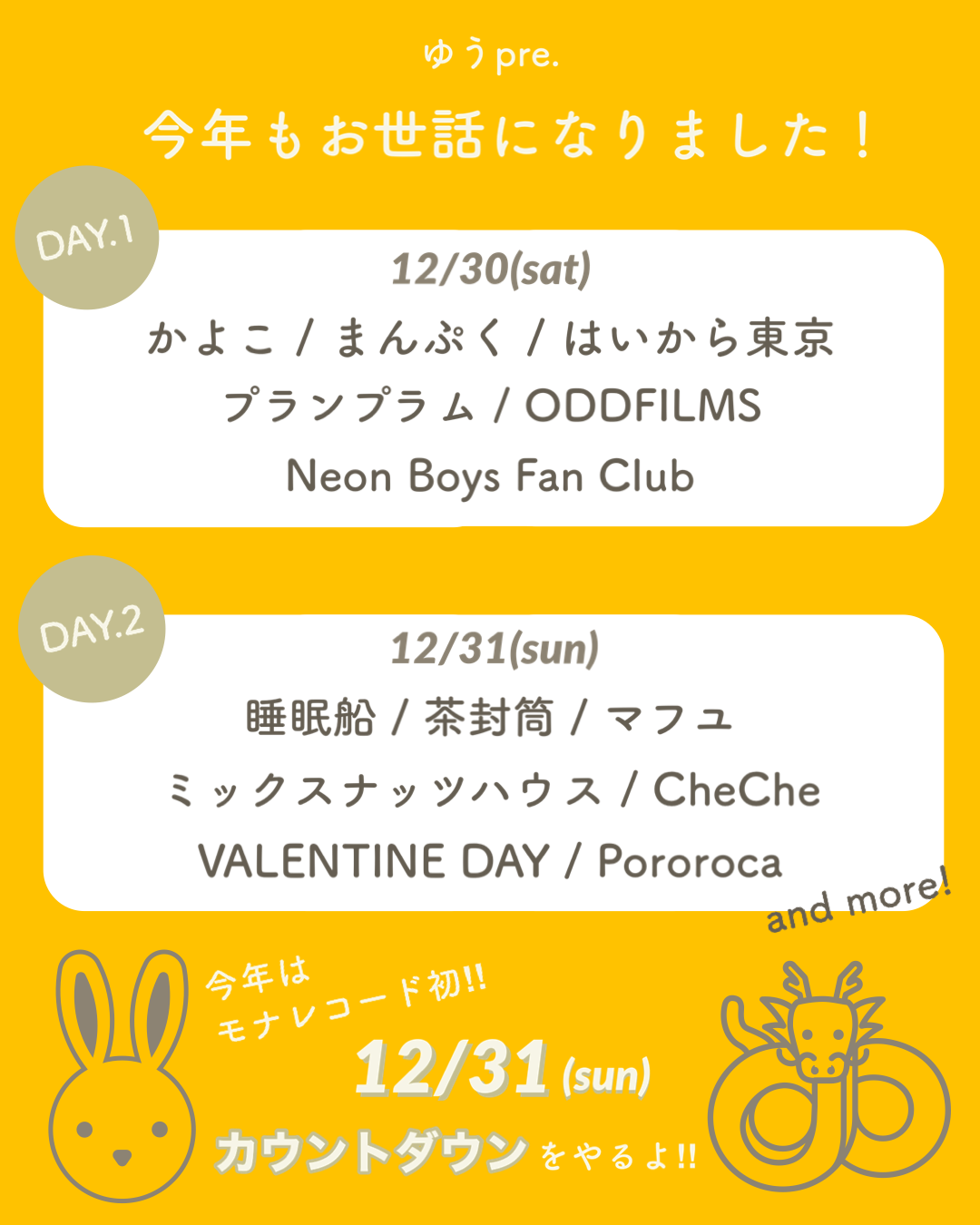 | 出演 | かよこ / まんぷく / プランプラム / はいから東京 / ODDFILMS / Neon Boys Fan Club
