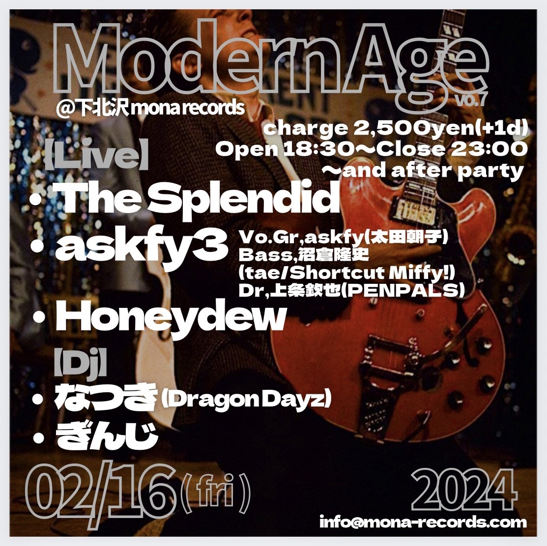 | 出演 | 【Live】 ・The Splendid ・askfy3 Vo.Gr, askfy(太田朝子)/ Bass,沼倉隆史 (tae/Shortcut Miffy!)/ Dr,上条欽也(PENPALS) ・Honeydew 【DJ】 ・なつき(Dragon Dayz) ・ぎんじ |