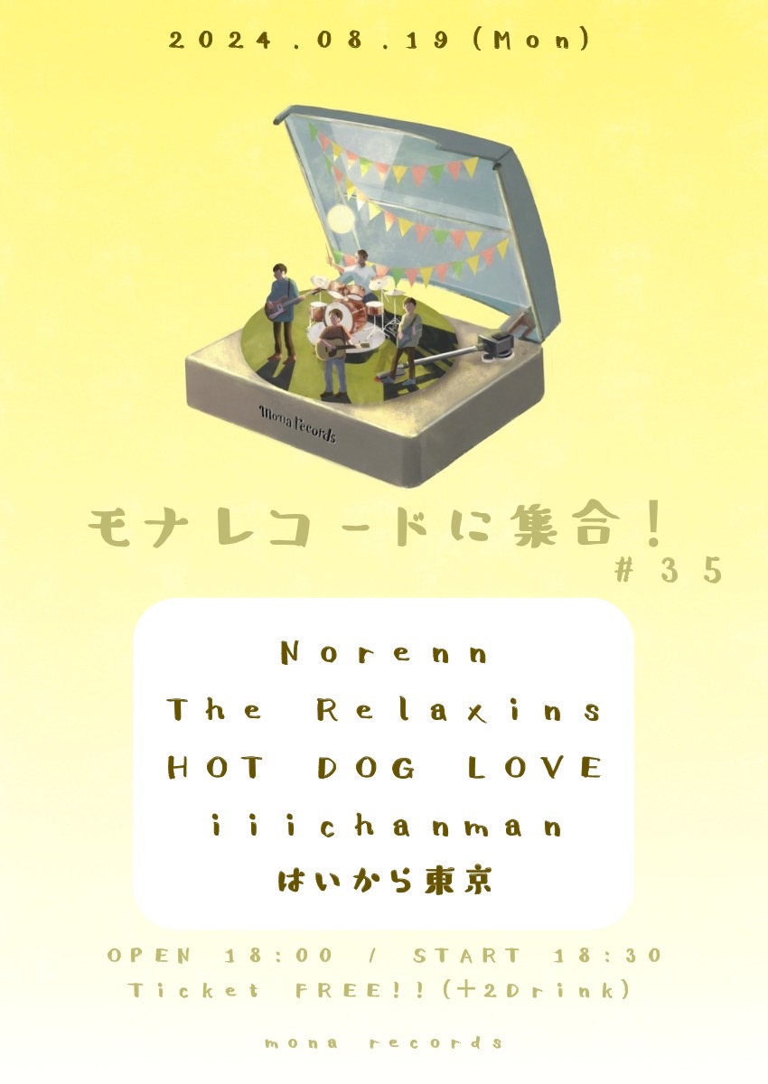 | 出演 | The Relaxins / Norenn / HOT DOG LOVE / iiichanman / はいから東京 |