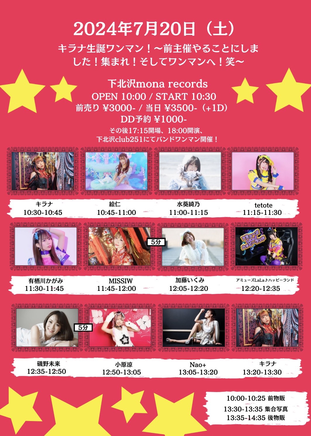 | 出演 | キラナ / Nao+ / 小原涼/ 加藤いくみ / 磯野未来 / 水葵綺乃 / 有栖川かがみ / アミューズLaLa♪ハッピーランド / MISSIW / 絵仁 / tetote |