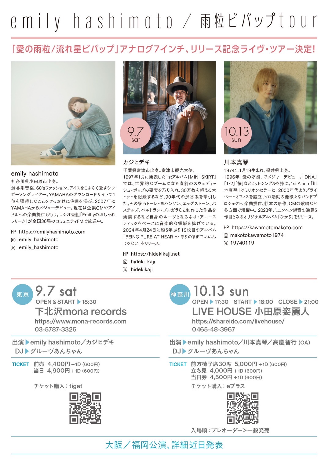 | 出演 | 【LIVE】emily hashimoto/カジヒデキ 【DJ】グルーヴあんちゃん |