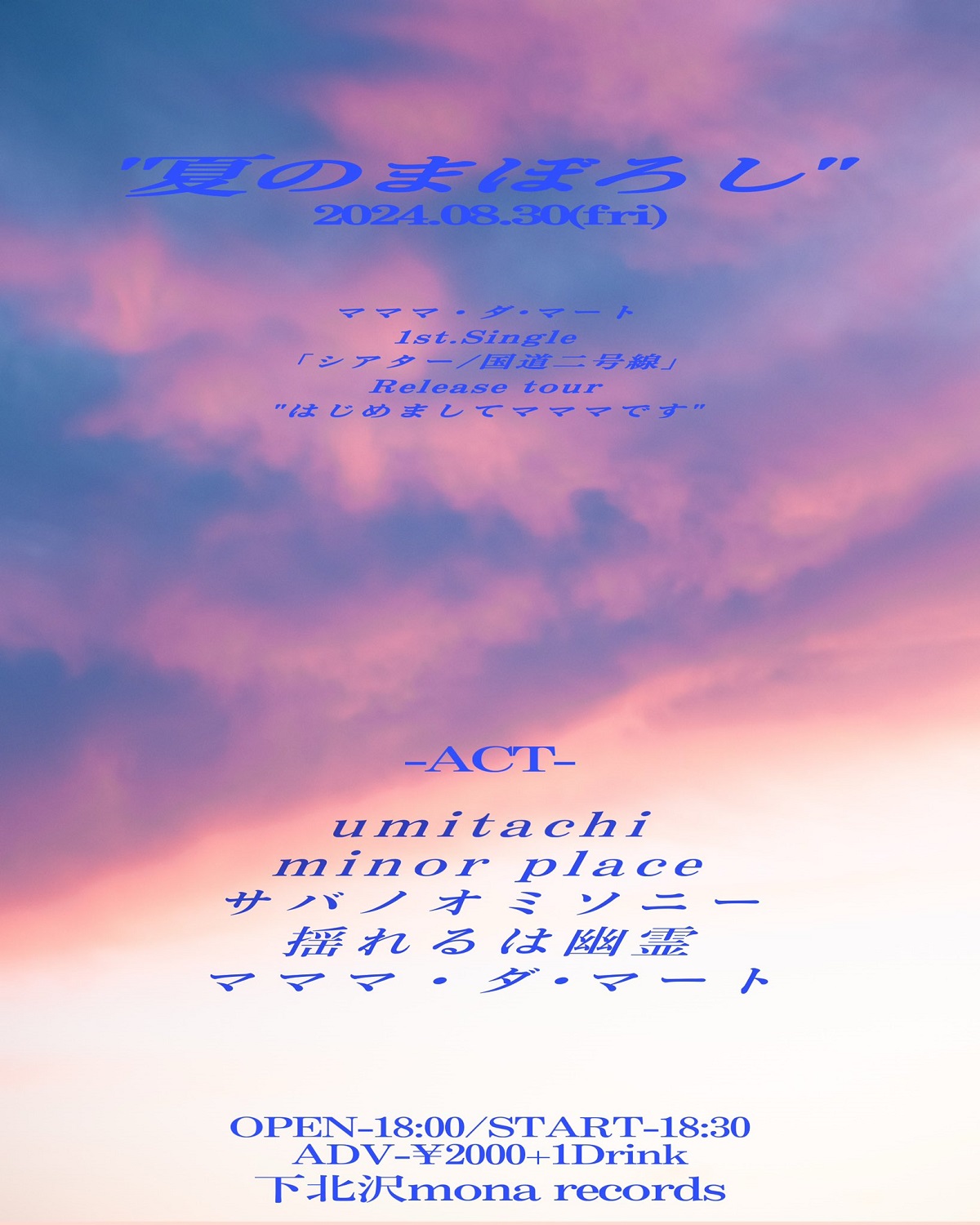 出演umitachi / minor place / サバノオミソニー / 揺れるは幽霊(岡山) / マママ・ダ・マート(岡山)