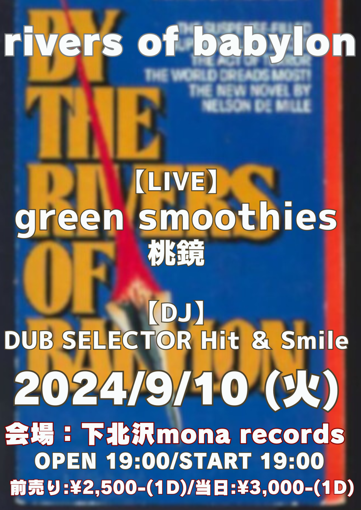 | 出演 | 【LIVE】 ・green smoothies ・桃鏡 【DJ】 DUB SELECTOR Hit & Smile |