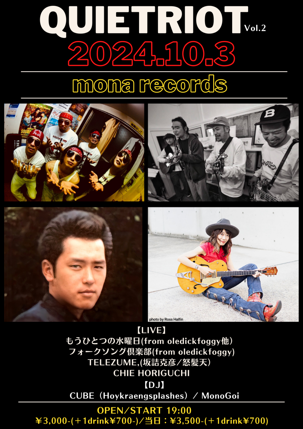 料金前売:¥3,000+1Drink (¥700)/ 当日:¥3,500+1Drink (¥700)