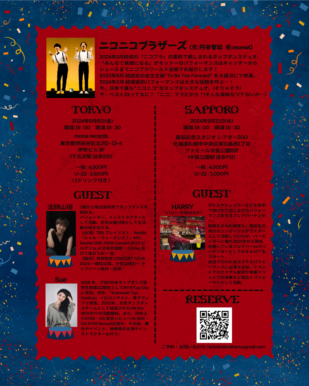 | 出演 | ニコニコブラザーズ(円谷智紀 & monet) / 法師山瑶 / Sue |