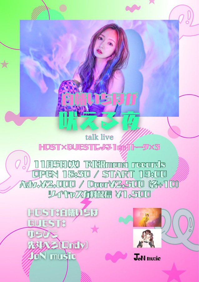 | 出演 | 白幡いちほ ゆらぴこ / 先斗ぺろ(Qndy) / JoN music |