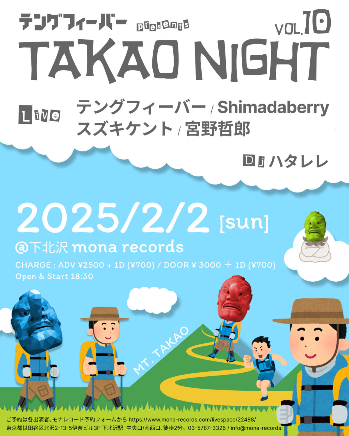 | 出演 | 【LIVE】 テングフィーバー Shimadaberry スズキケント 宮野哲郎 【DJ】 ハタレレ |