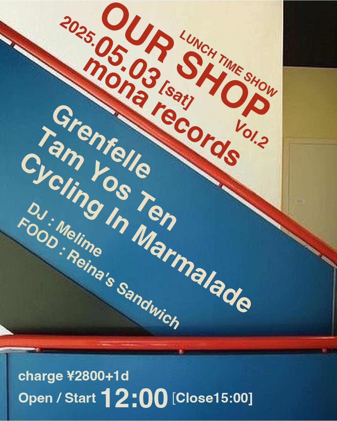 | 出演 | 【Live】 ・Grenfelle ・Tam Yos Ten ・Cycling In Marmalade 【Dj】 ・Melime (Finders Keepers KOGARECORDS) 【Food】 Reina's Sandwich |