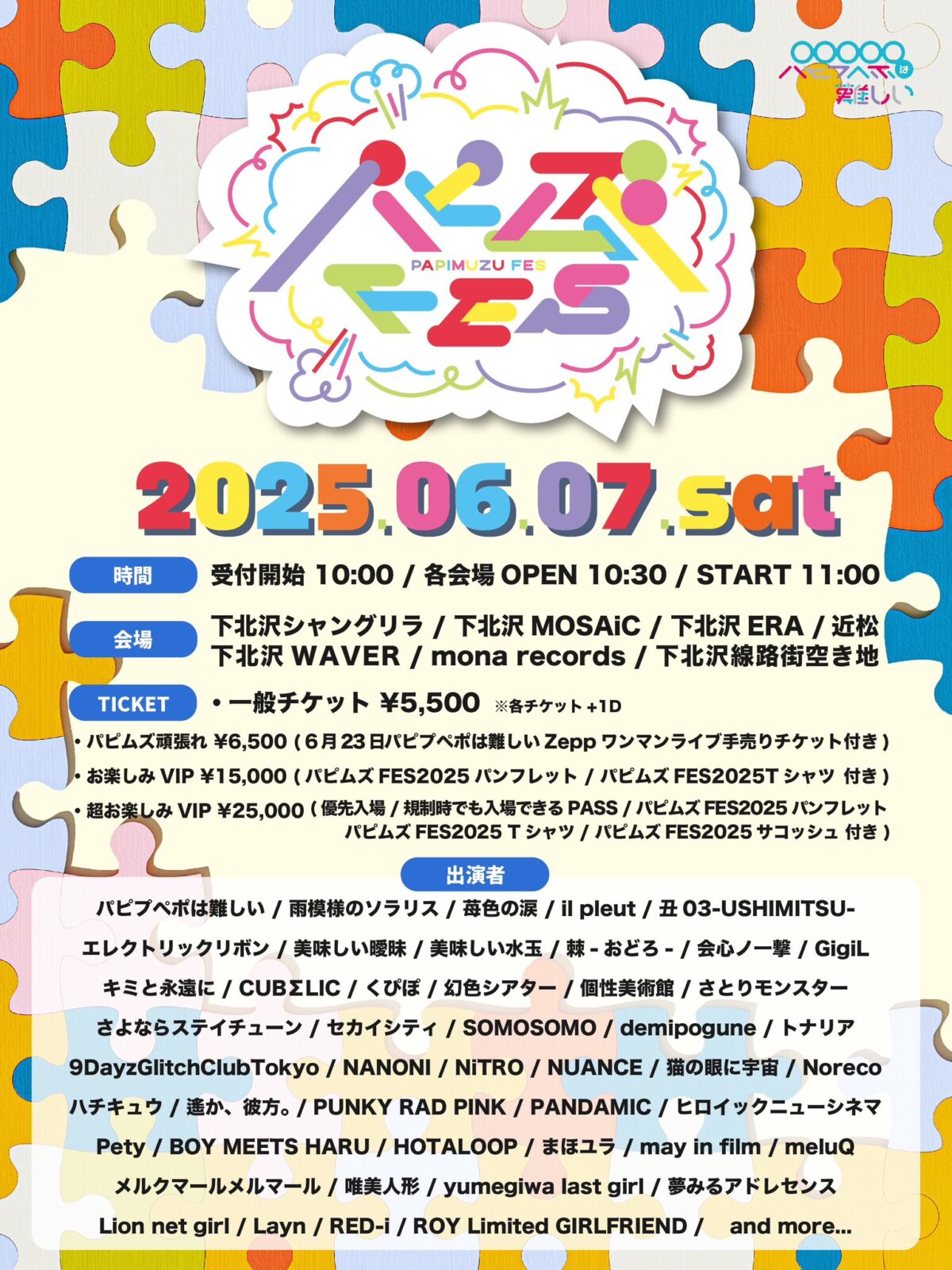 (優先入場 / 規制時入場できる権力 / パピムズFES2025パンフレット / パピムズFES2025 Tシャツ / パピムズFES2025サコッシュ 付き)