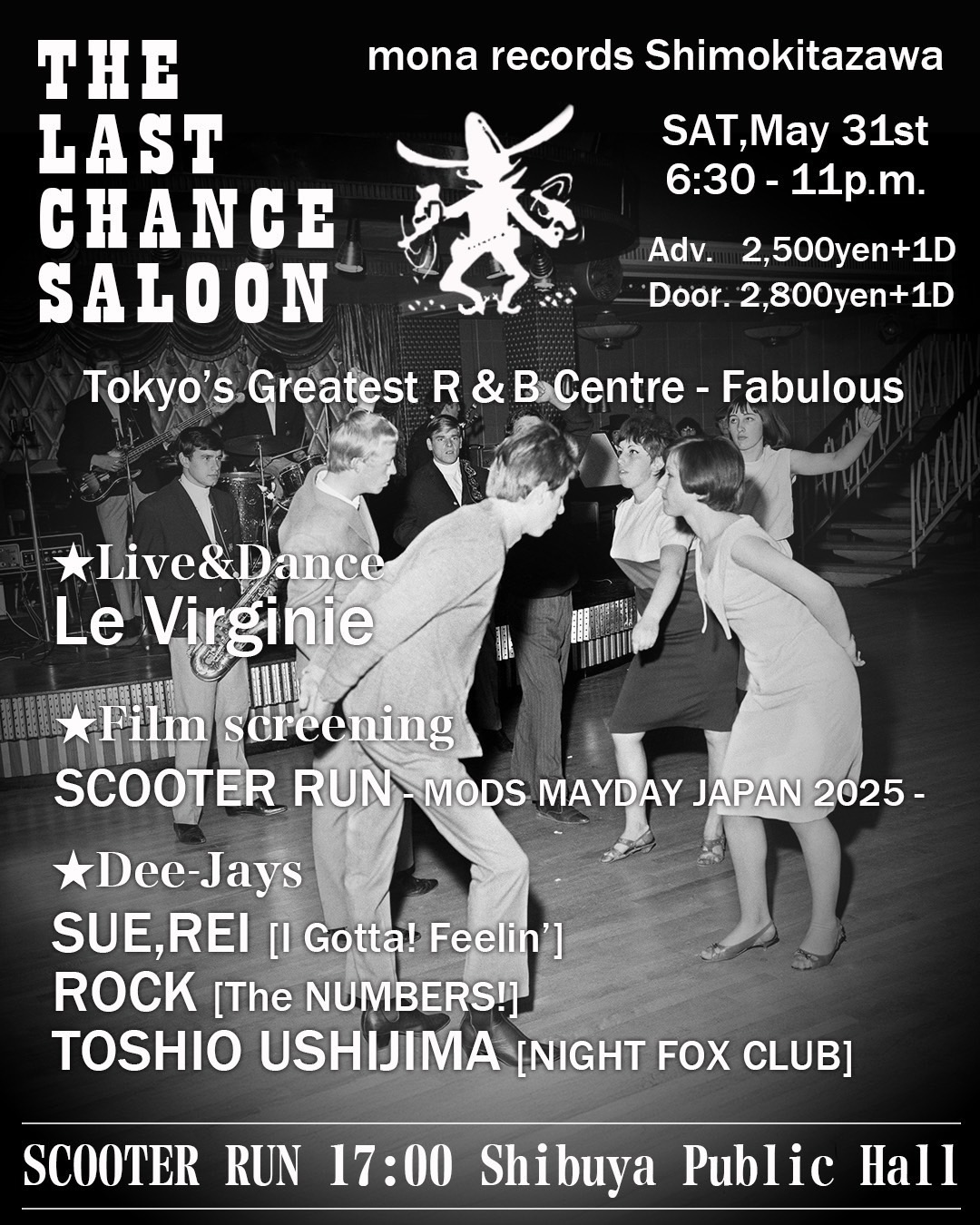 | 出演 | 【Dj】 [I Gotta!Feelin’] SUE、REI [The NUMBERS!] ROCK [NIGHT FOX CLUB] TOSHIO USHIJIMA 【Live&Dance Show】 Le Virginie 【Film Screening】 SCOOTER RUN -MODS MAYDAY JAPAN 2025- |