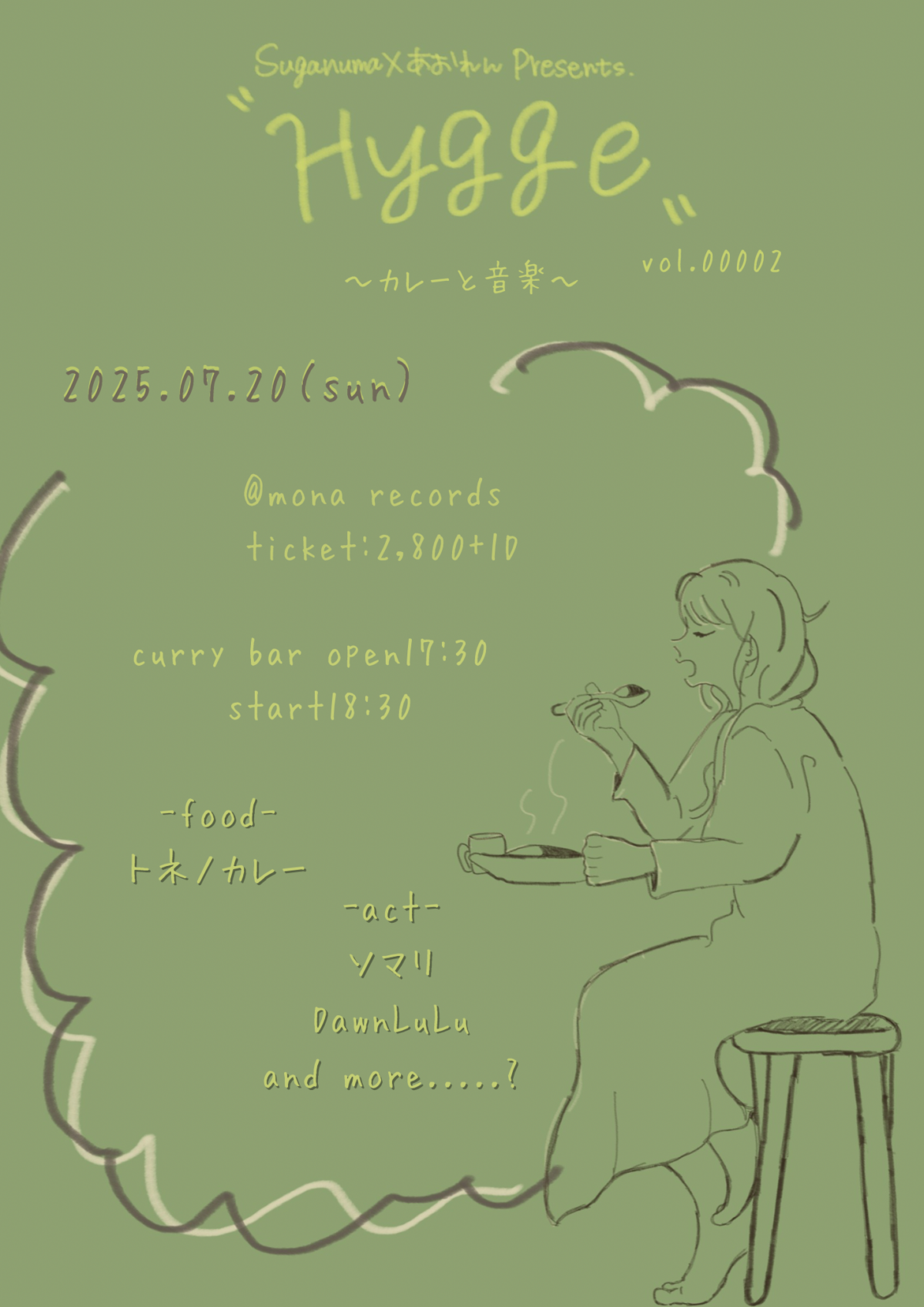 | 出演 | 【live】ソマリ/DawnLuLu/棚上瑞 【food】トネノカレー |