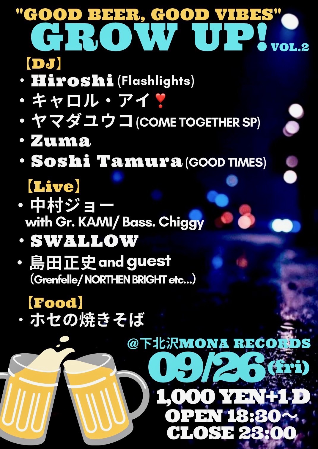 | 出演 | 【Dj】 ・Hiroshi (Flashlights) ・ キャロル・アイ❣️ ・Zuma ・ヤマダユウコ(COME TOGETHER SP) ・Soshi Tamura(GOOD TIMES) 【Live】 ・中村ジョーwith Gr.KAMI/ Bass. Chiggy (Motel's Sofa) ・SWALLOW ・島田正史(Grenfelle/NORTHEN BRIGHT etc…)and guest 【Food】 ・ホセの焼きそば |