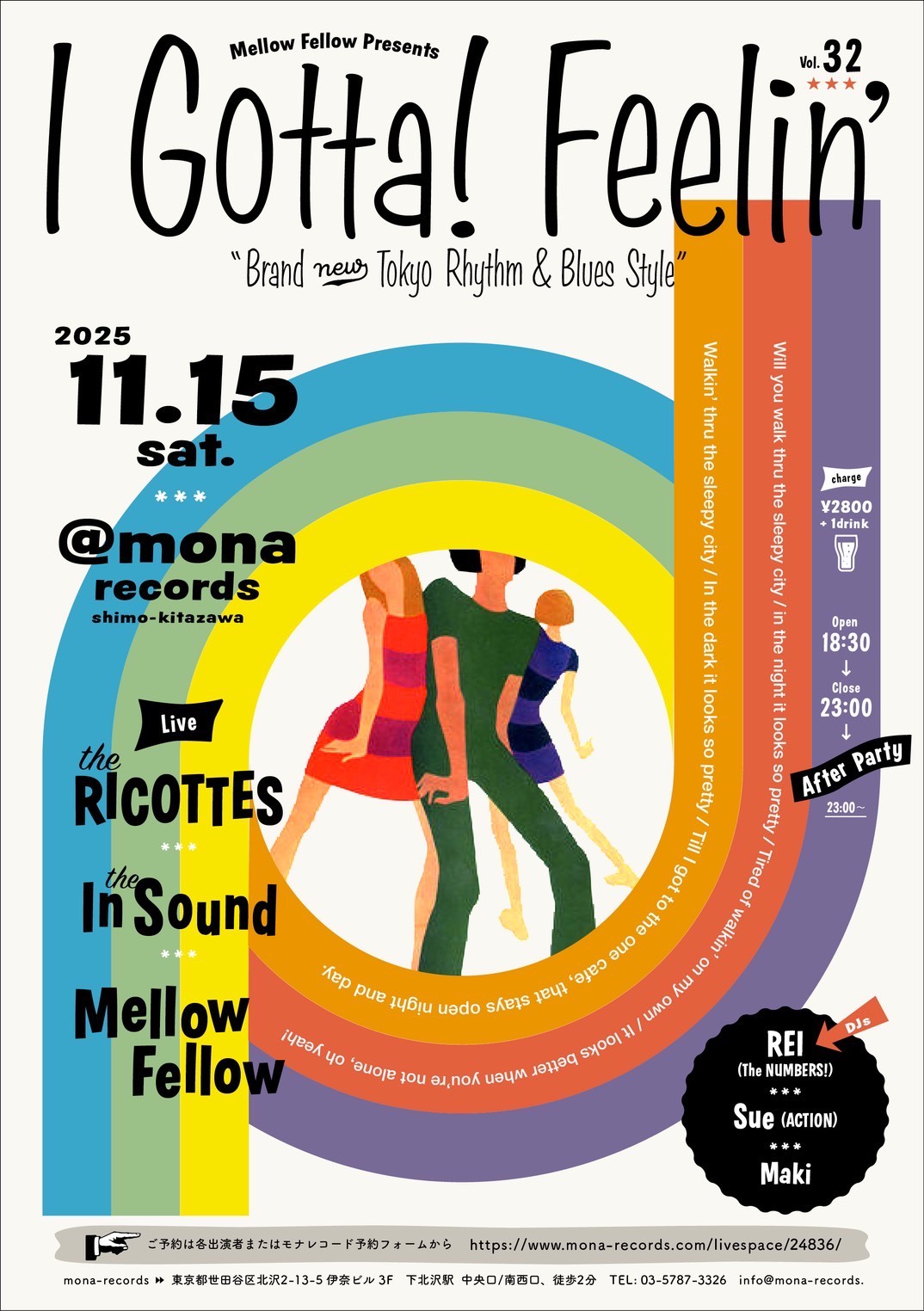 | 出演 | 【Live】 ・THE RICOTTES ・The In Sound ・Mellow Fellow 【Dj】 ・REI(The NUMBERS!) ・Sue(ACTION) ・Maki |