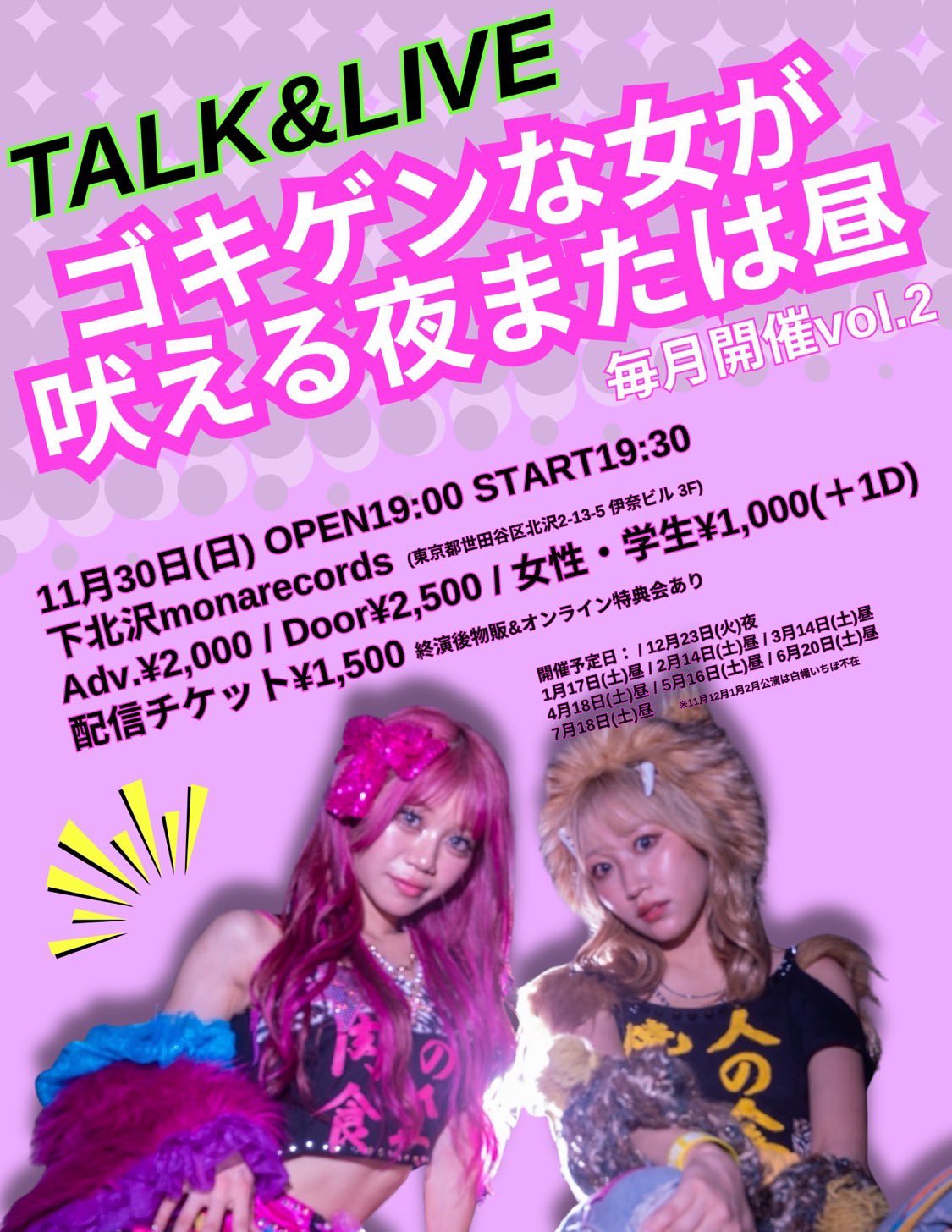 | 出演 | 「ゴキゲンな女が吠える夜または昼」vol.2 |
