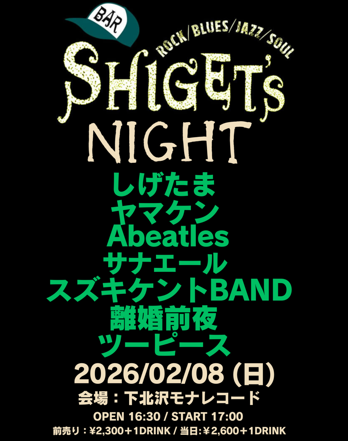 出演しげたま/ヤマケン/Abeatles/サナエール/スズキケントBAND/離婚前夜/ツーピース