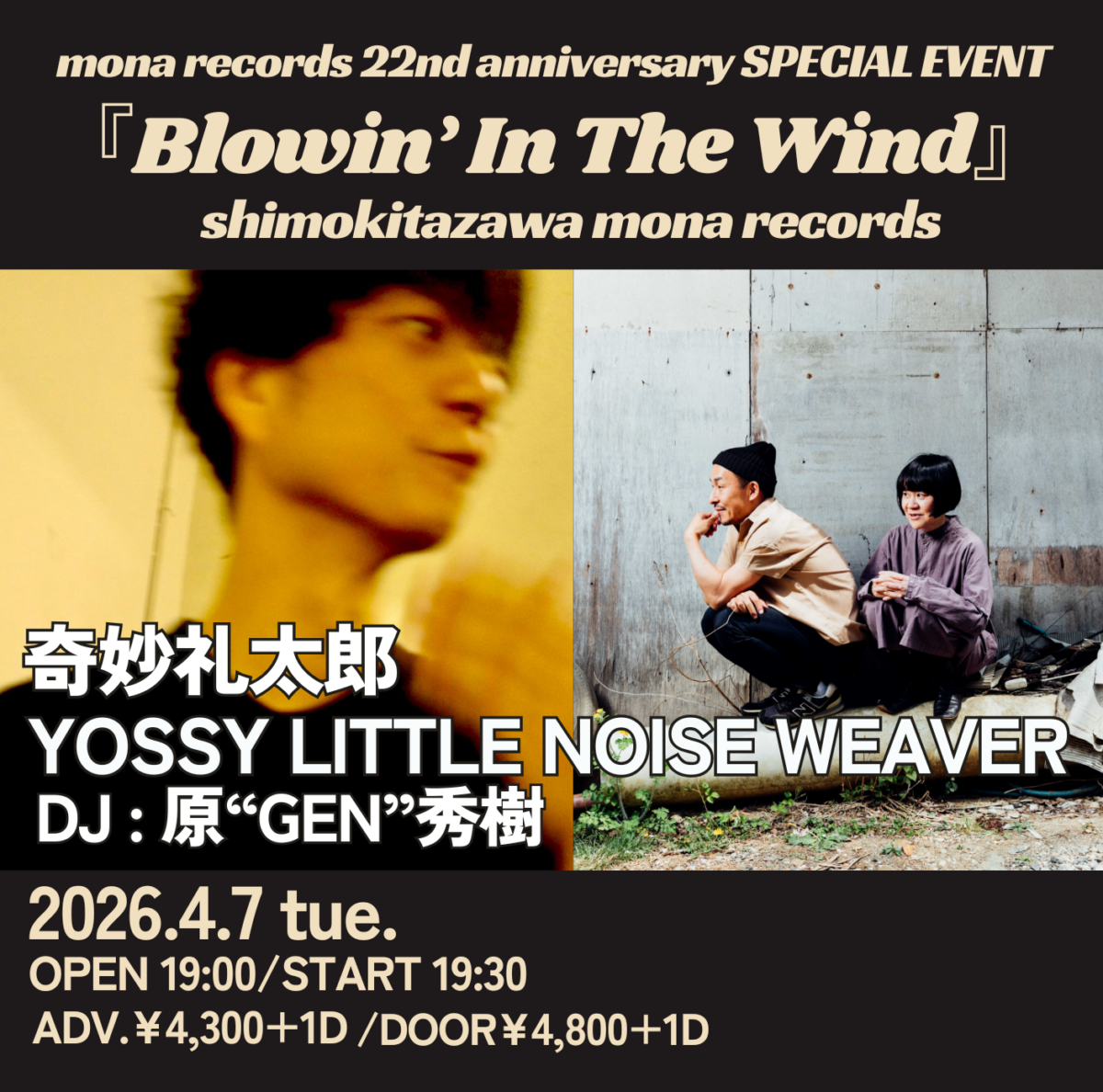 | 出演 | 奇妙礼太郎 YOSSY LITTLE NOISE WEAVER DJ:原"GEN"秀樹 |