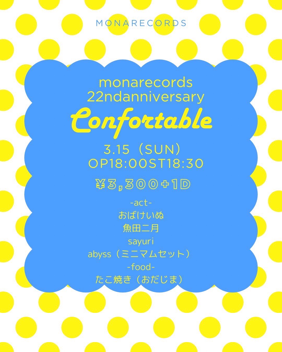 料金前売:¥3300+1Drink