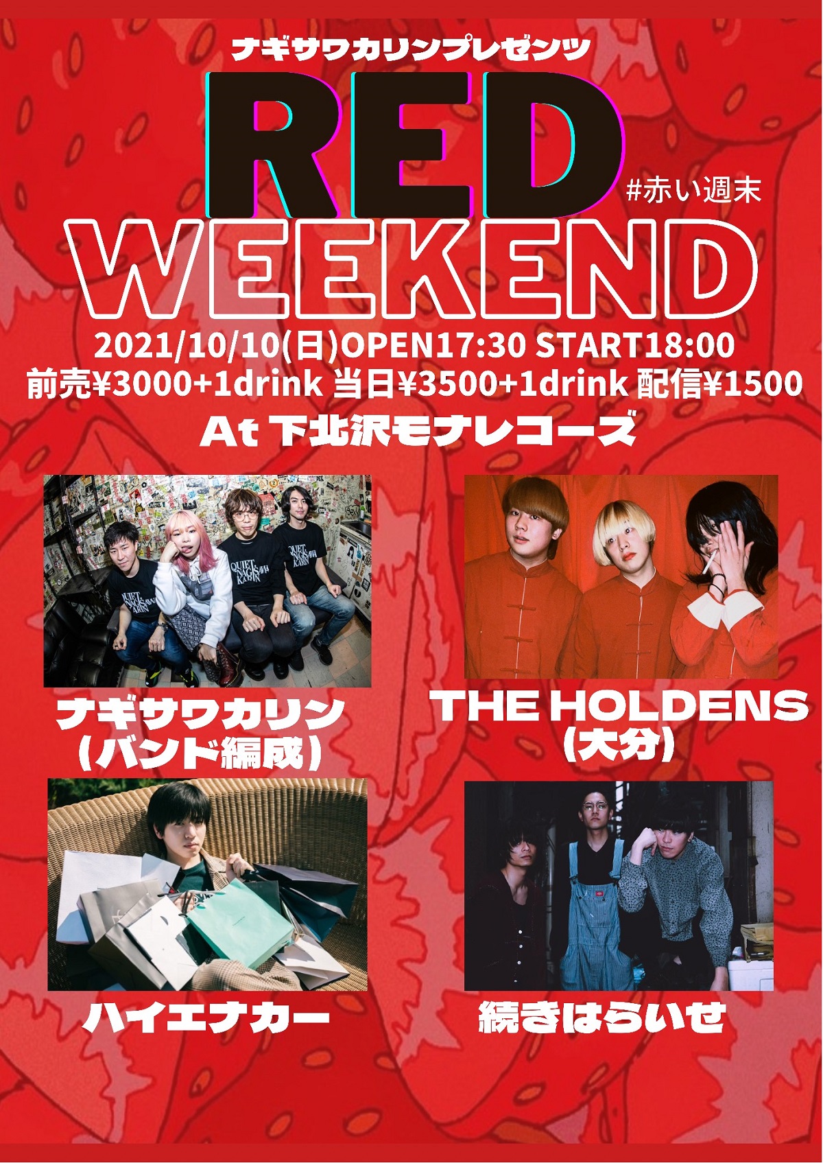 出演ナギサワカリンバンド / ハイエナカー / 続きはらいせ / ※THE HOLDENS(大分)はキャンセルとなりました。