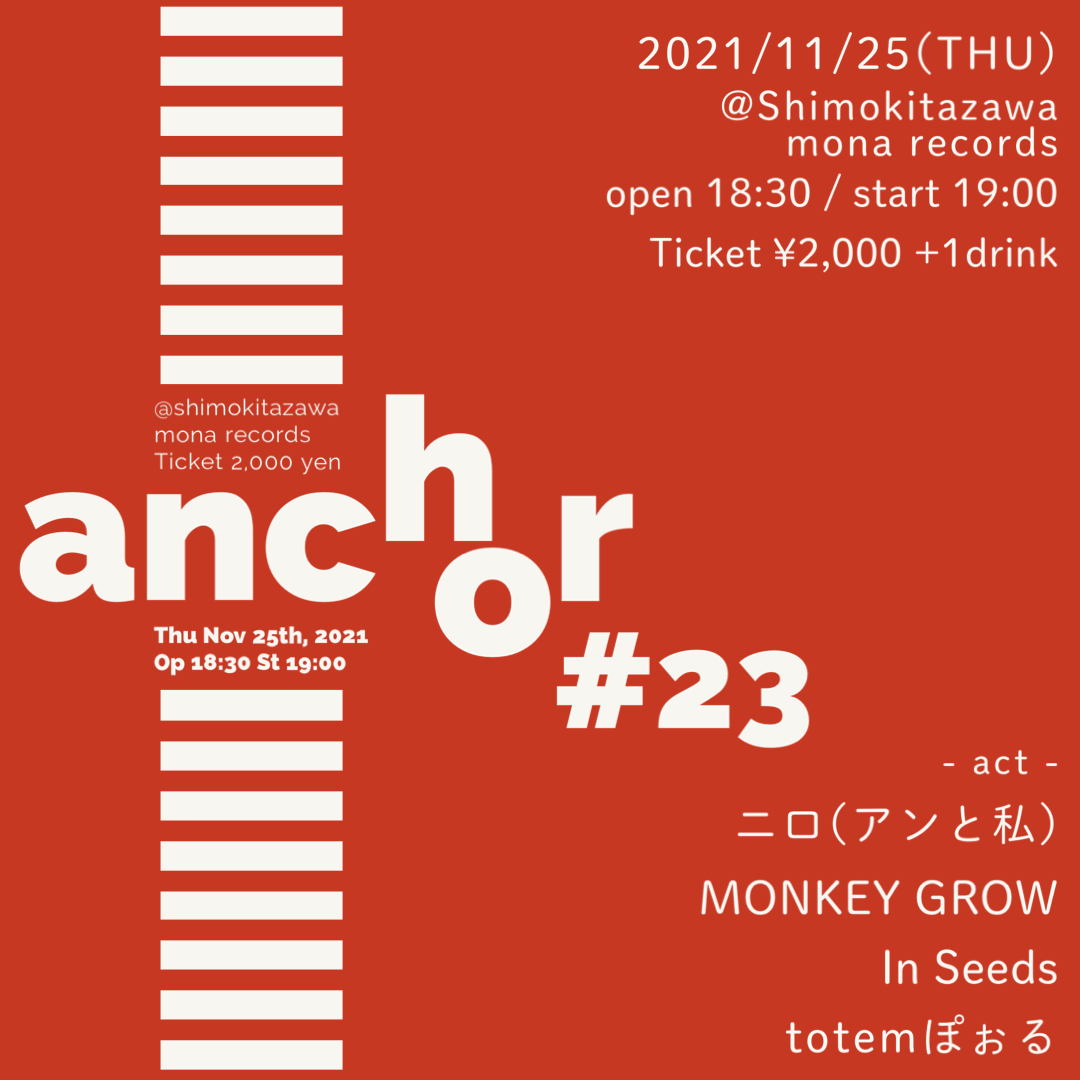 | 出演 | ニロ(アンと私) / MONKEY GROW / In Seeds / totemぽぉる |