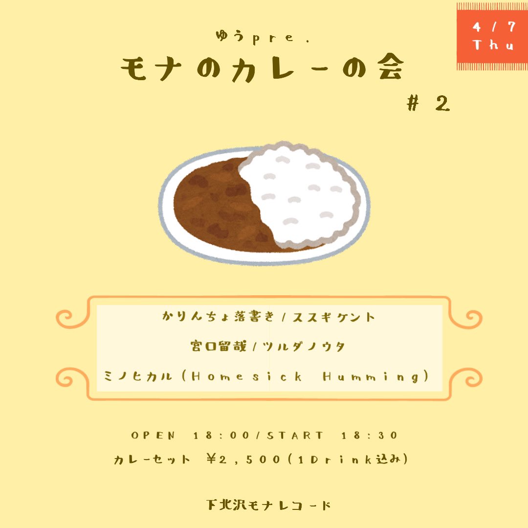 | 料金 | 前売:¥2,500(カレー+1Drink込み) |
