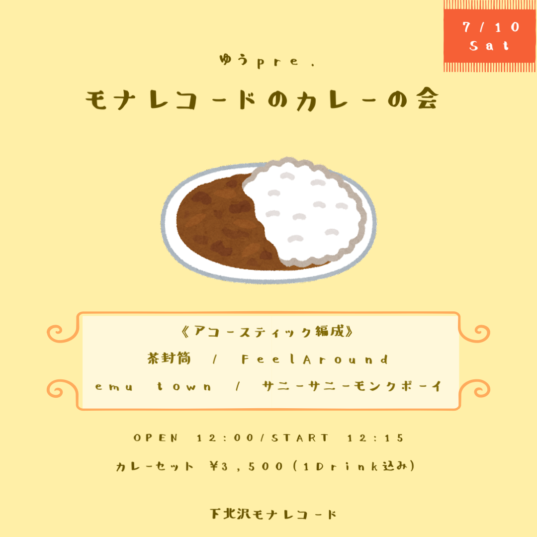 | 出演 | 茶封筒アコースティック / emu town / サニーサニーモンクボーイ / FeelAlound |