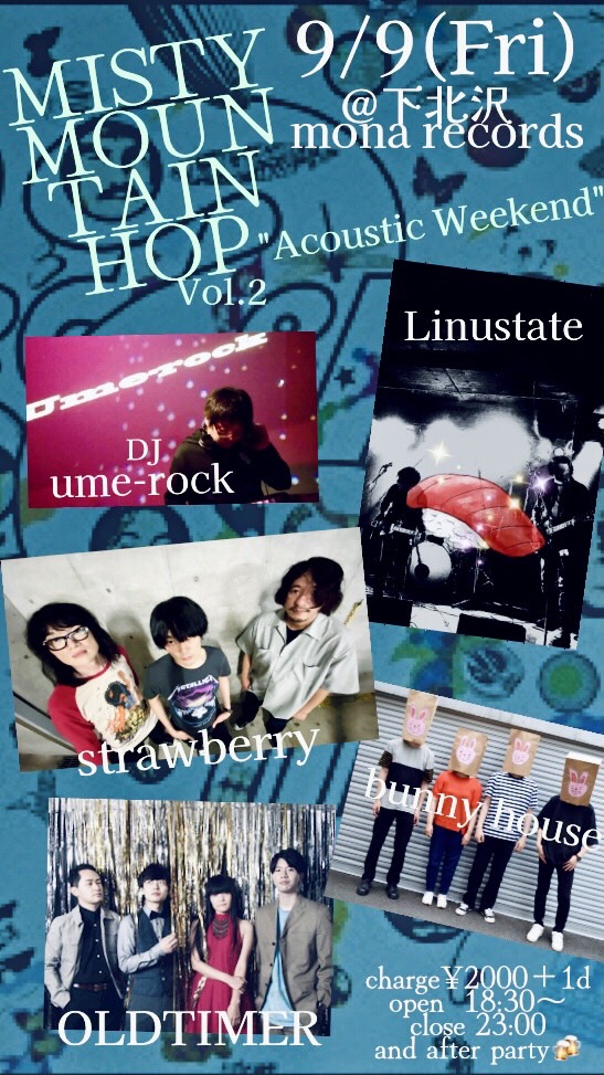 | 出演 | 【LIVE】strawberry / Linustate / bunny house / OLDTIMER【DJ】ume-rock |