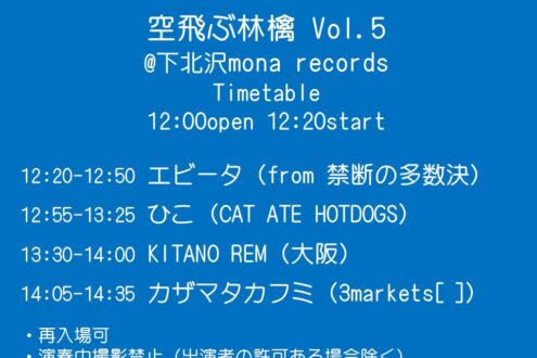 KITANO REM / ひこ(CAT ATE HOTDOGS) / カザマタカフミ(3markets[ ]) / ※エビータ(from 禁断の多数決)さんは都合によりキャンセルとなりました。※こちらの公演は延期となりました。