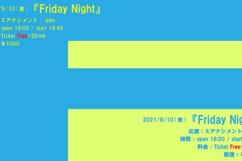 前売:¥0+2Drink 学生:¥0+1Drink 配信:¥1,000