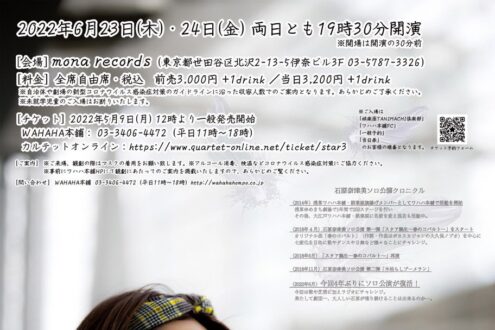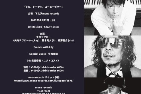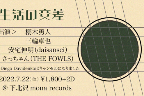 当日:¥3,000+1Drink(予約なしの当日券のみ。ふらっと来て。) ※4年前のスタンプカード、ジッと待ってるCD持参の方500円引き